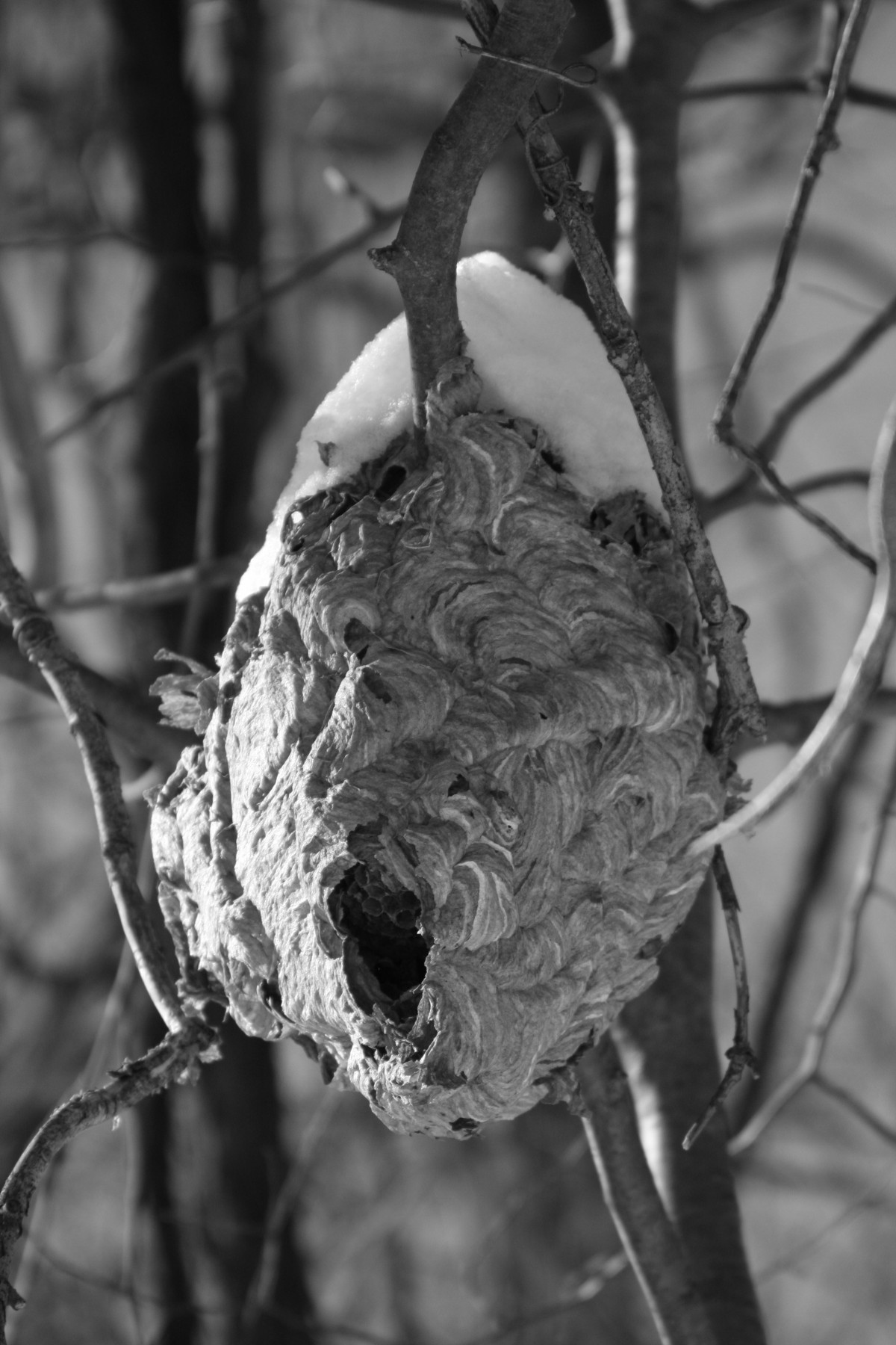 So now the dilemma. What was I going to do about this situation? While the pain from the stings slowly subsided, I did what I always do and started the research. I didn’t necessarily want to kill anything and the main way of managing trouble nests, with powerful spray pesticides, was also not my favored option since this was right above my chicken yard. I learned about the colors to wear and not wear. I learned how to dress for battle, to deal with it at dusk or night when they were less active, but for god’s sake don’t shine your flashlight right at them, and really you probably should just get a professional to deal with it.  I also learned that the MFBFHB’s, when not located in a place that causes us humans problems are beneficial in many ways. They are beneficial predators of other insects and if you’ve ever had occasion to examine an old, abandoned nest, they are rather magnificent.  When I  think of all that they do to create them, one tiny, chewed-up woody-material mouthful at time, it is rather amazing.  Hell, I’ve had old abandoned nests as decoration before.