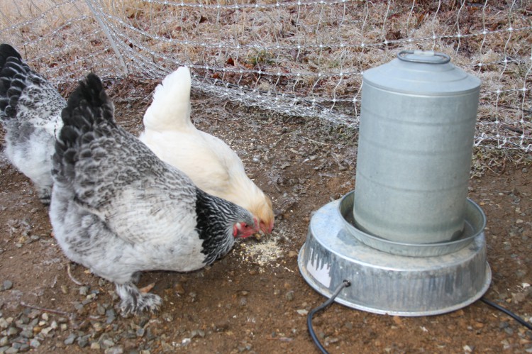 This thing has been a revelation. One of the best purchases I have made. Some women go crazy for clothes, shoes and handbags (OK, I do like shoes too), but I am undone by a galvanized chicken water heater.  Forget the chocolates and flowers: the way to my heart appears to be through a chicken water heater. I love this thing! Its internal thermostat is set to come on only when the temperature drops below freezing, which assuages my frugal electricity-miser mode, learned from 11 years living off the grid.  Now my girls have water at all times. No more hauling water down the hill every morning, sometimes twice a day when temperatures were really cold. A small device, which by-god works well, that is paying dividends in time and energy saved, while also benefiting my flock. Have I said how much I love this thing? I LOVE MY CHICKEN WATER HEATER!